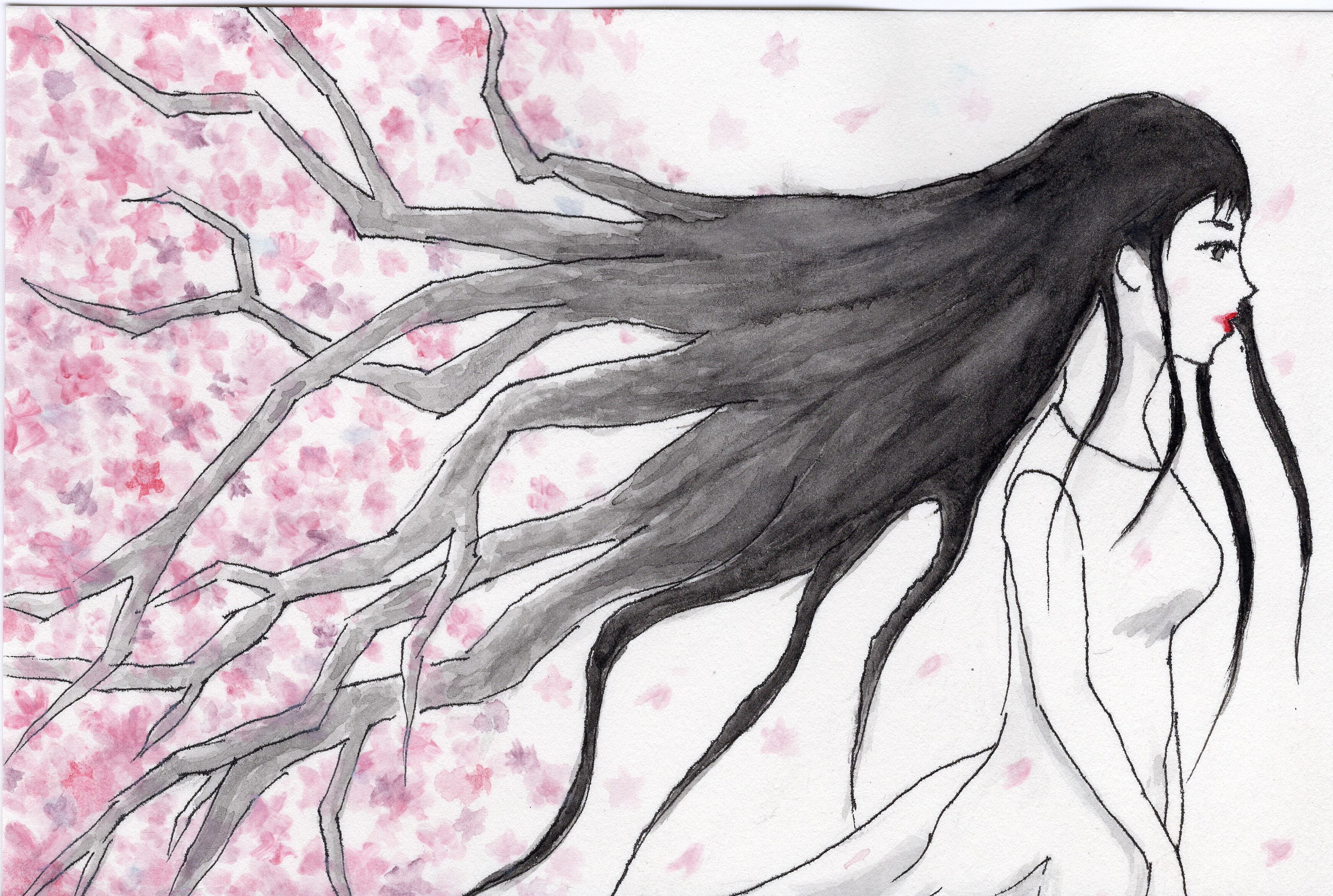 櫻の木に儚く美しく意志の強い女性を重ねた1枚。