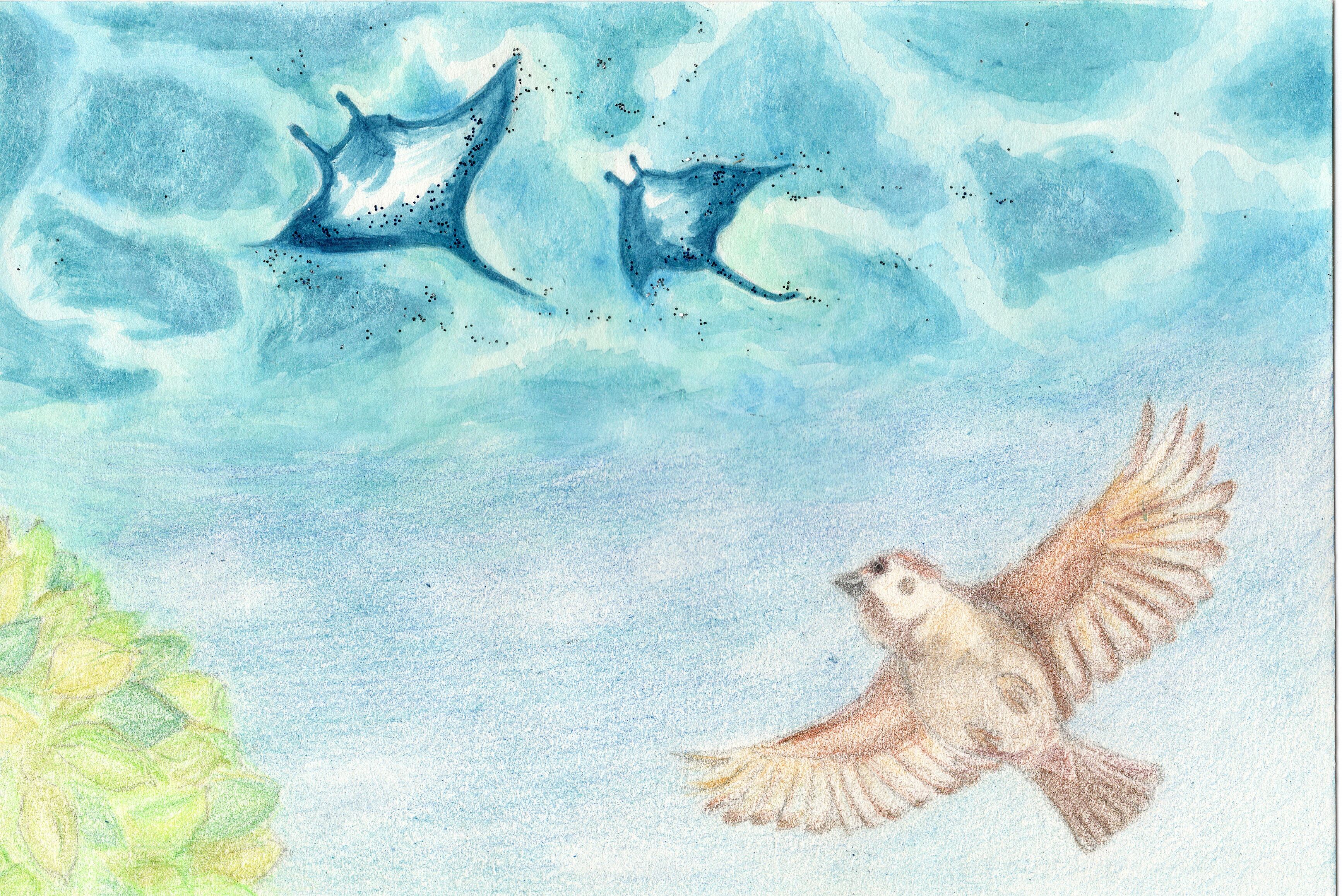 水彩と色鉛筆でそれぞれの表情を使い分けています。