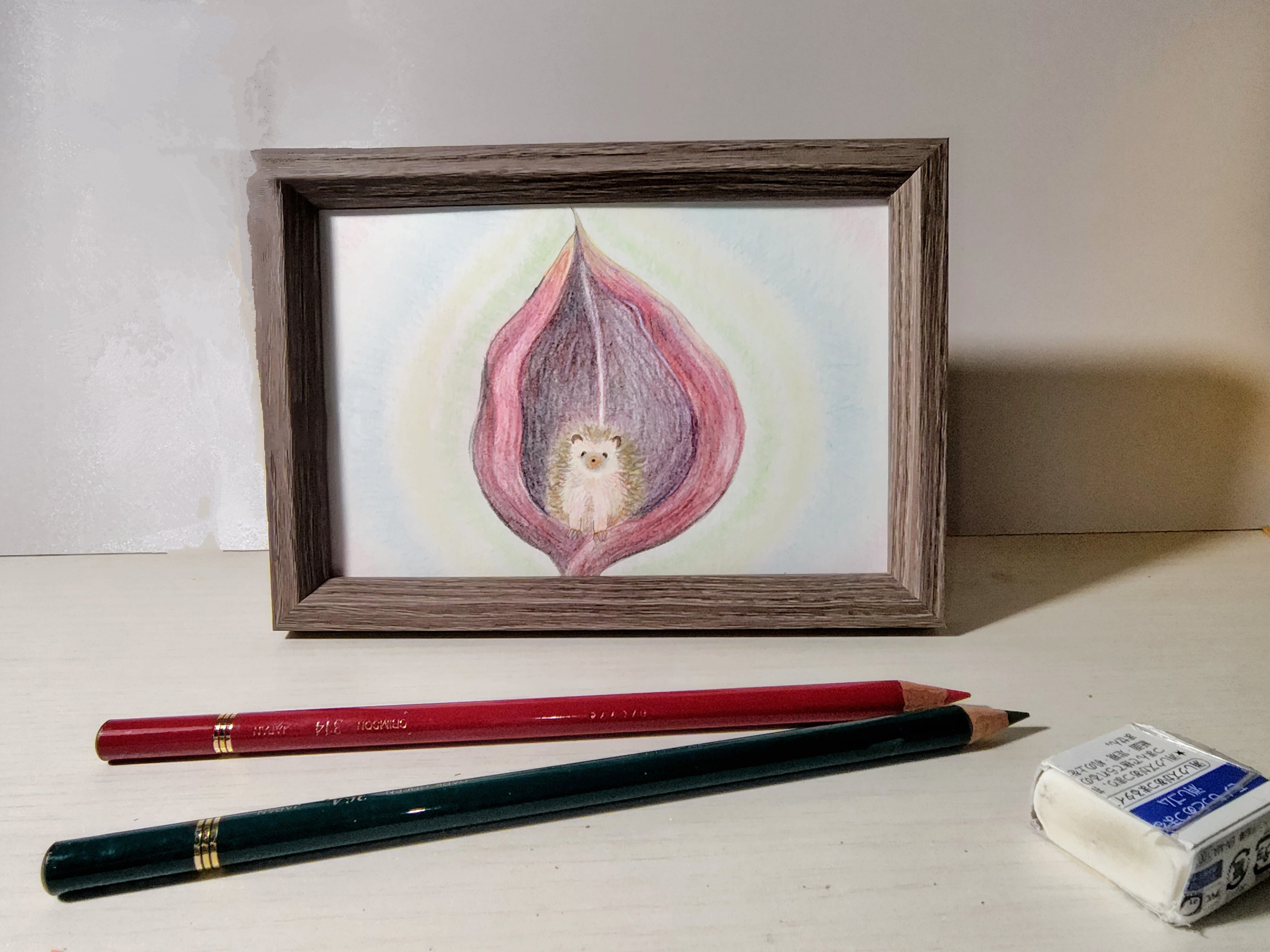 背景には後光も差してちょっとありがたいハリネズミに仕上がりました。