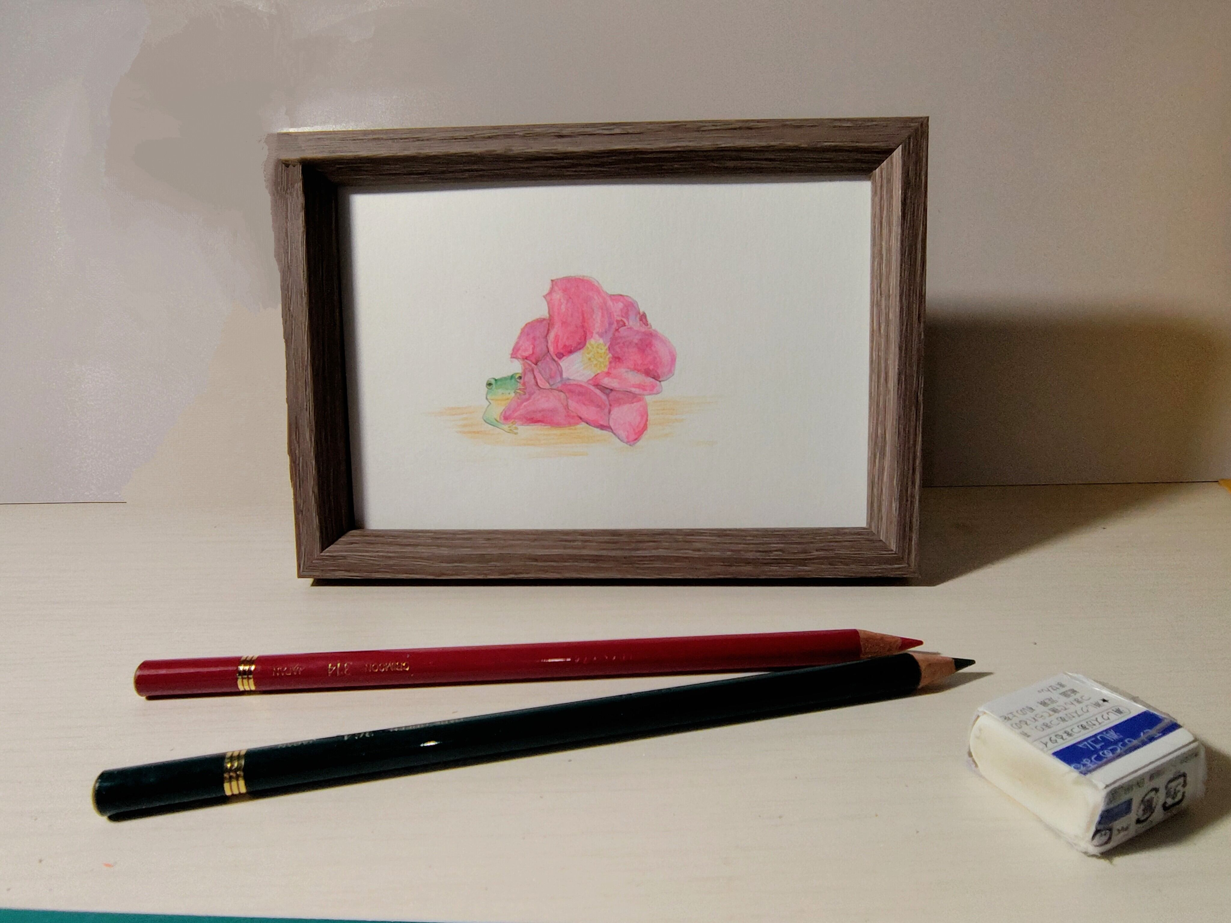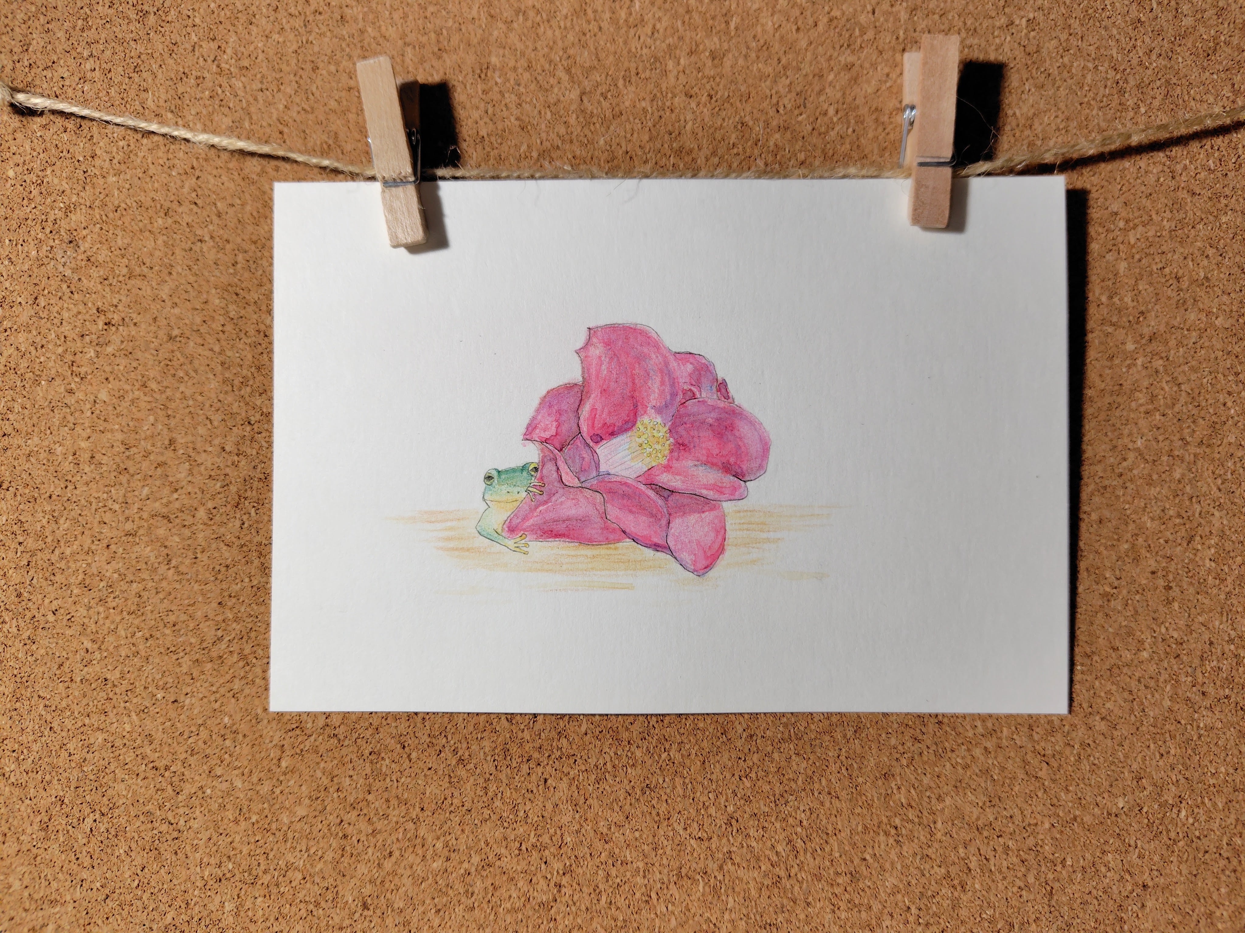 【はがきサイズ原画】落椿と蛙